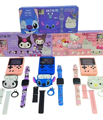 Combo Para Niños Mini KR-818 Smartwatch + Consola + Audífonos